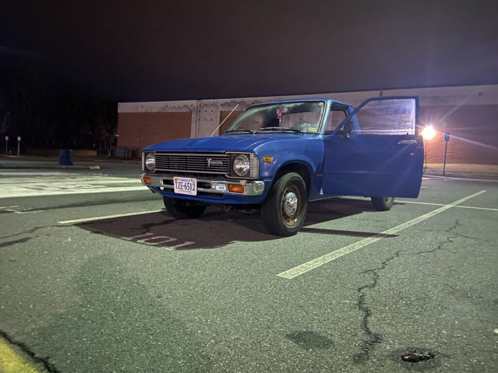 This was the first photo I ever took of the 1979 Toyota Longbed that sat for sale in front of my neighbor’s house in 2021. I remember walking by it for a month or two, headed down to the bus stop at the corner, and leaning in to see that beautiful blue plaid vinyl on the seats, and the shine of the gear knob. It had a massive blue steering wheel with an angular “T” in the center, which matched its logo on the grille. “That would be cool,” sophomore me thought, “But it’s too old and too impractical to get approval for.” But I was immediately proven wrong mere days later, when my mom brought it up to me in the kitchen. Sure, I was a huge car nut, and I had been driving my family around ever since I got my learner’s permit, but surely I wasn’t lucky enough to have something so cool as my first car. She simply said, “It would be a whole lot of fun,” and I couldn’t agree more.